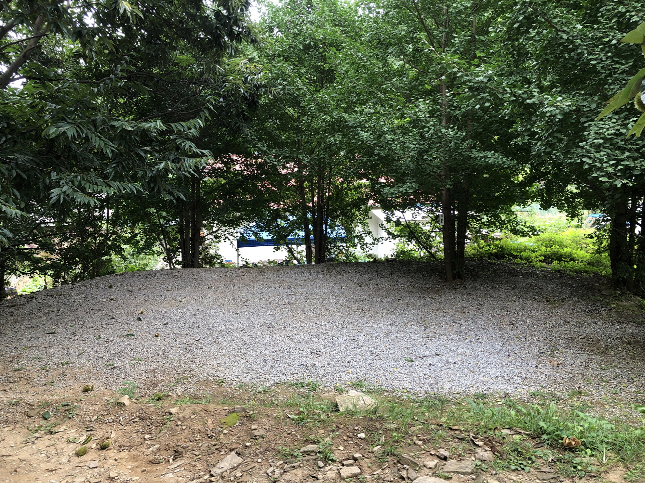 산이다 보니 원래는 흙바닥이지만 사이트마다 이렇게 파쇄석으로 깔려 있어, 쾌적하게 캠핑을 즐길 수 있습니다.