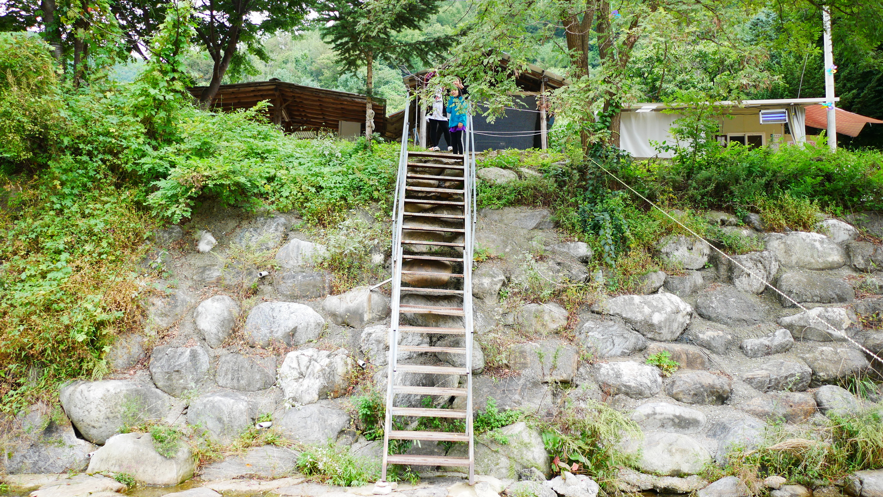 단, 개울가로 내려가기 위해서는 이렇게 계단을 이용해야 하는데, 계단의 경사가 좀 가파르다 보니,