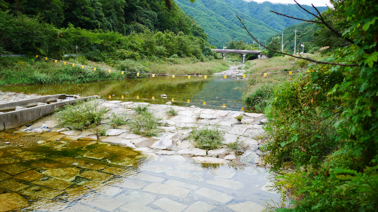 캠핑장의 앞에는 이렇게 넓은 개울가도 있어, 한여름에도 물놀이하기에 좋습니다.