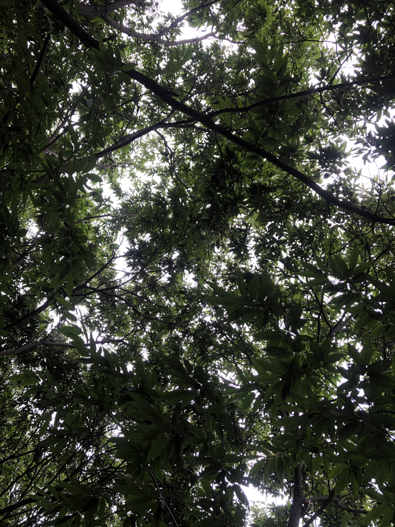 사이트에 앉아서 올려다본 하늘입니다. 나무들이 빼곡하게 있어, 한여름에도 타프없이 나무 그늘에서