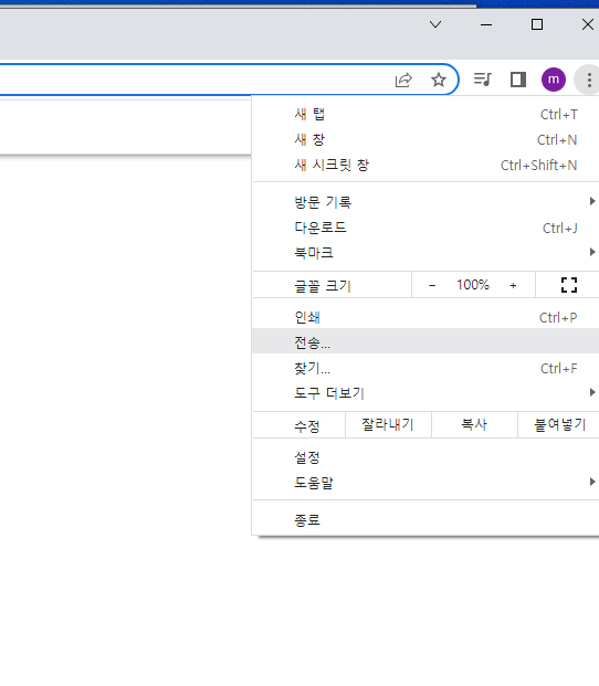 바로 크롬 브라우저에서 전송기능을 이용하는 것입니다.