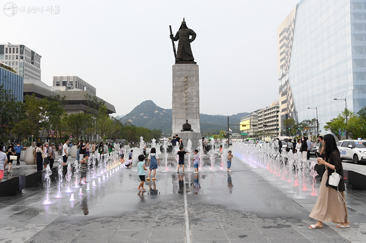 포인트는 광장숲으로 나와 이순신 장군상을 배경으로 사진을 찍으면 멋진 인생 샷을 찍을 수 있다.지하철 광화문 7번출구로 나오면 바로 만날 수 있다.또한 이순신 장군 동상 앞에 있는 바닥 분수인 명량 분수는 솟구치는 물줄기가 용맹한 전투의 한 장면을 연상케 한다.