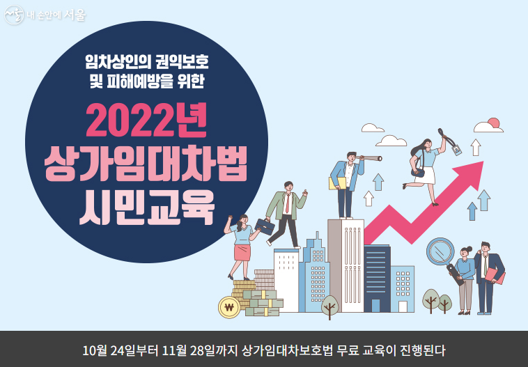 서울시는 일방적인 계약해지, 임대료 고액 인상, 권리금 지급 거부 등 상가임대차와 관련해 자주 발생하는 분쟁을 사전에 방지하기 위해 10월~11월 2개월 동안 상가임대차 보호법 무료 교육을 진행하기로 하였습니다.