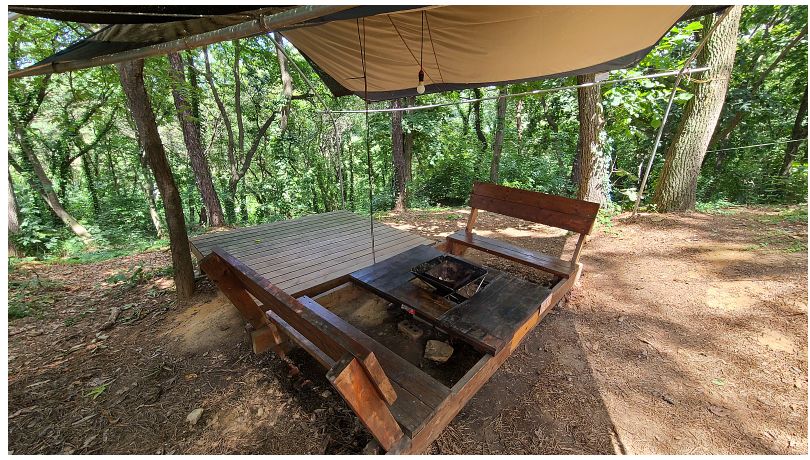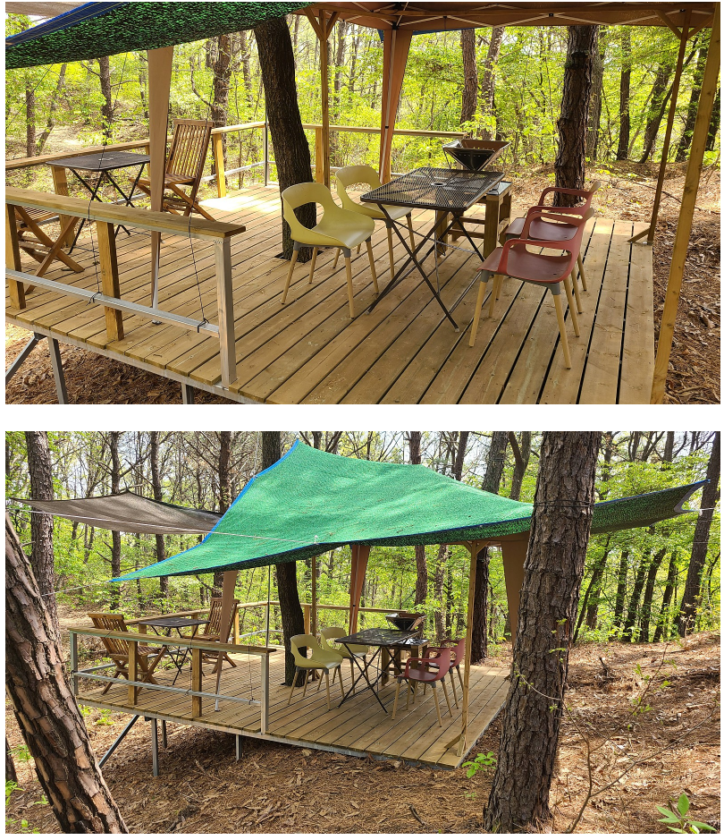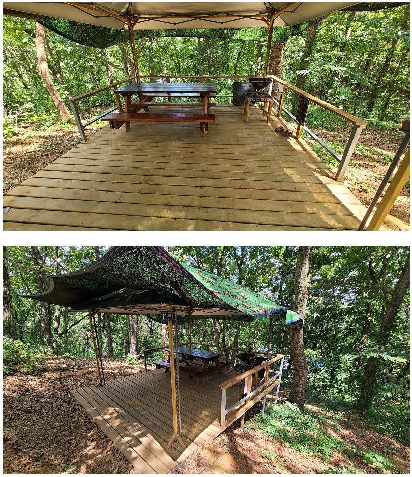 또한 숲 속일지라도 그늘막을 별도로 설치하여 고기를 구워 먹는 데 있어 아주 시원하게 바베큐를