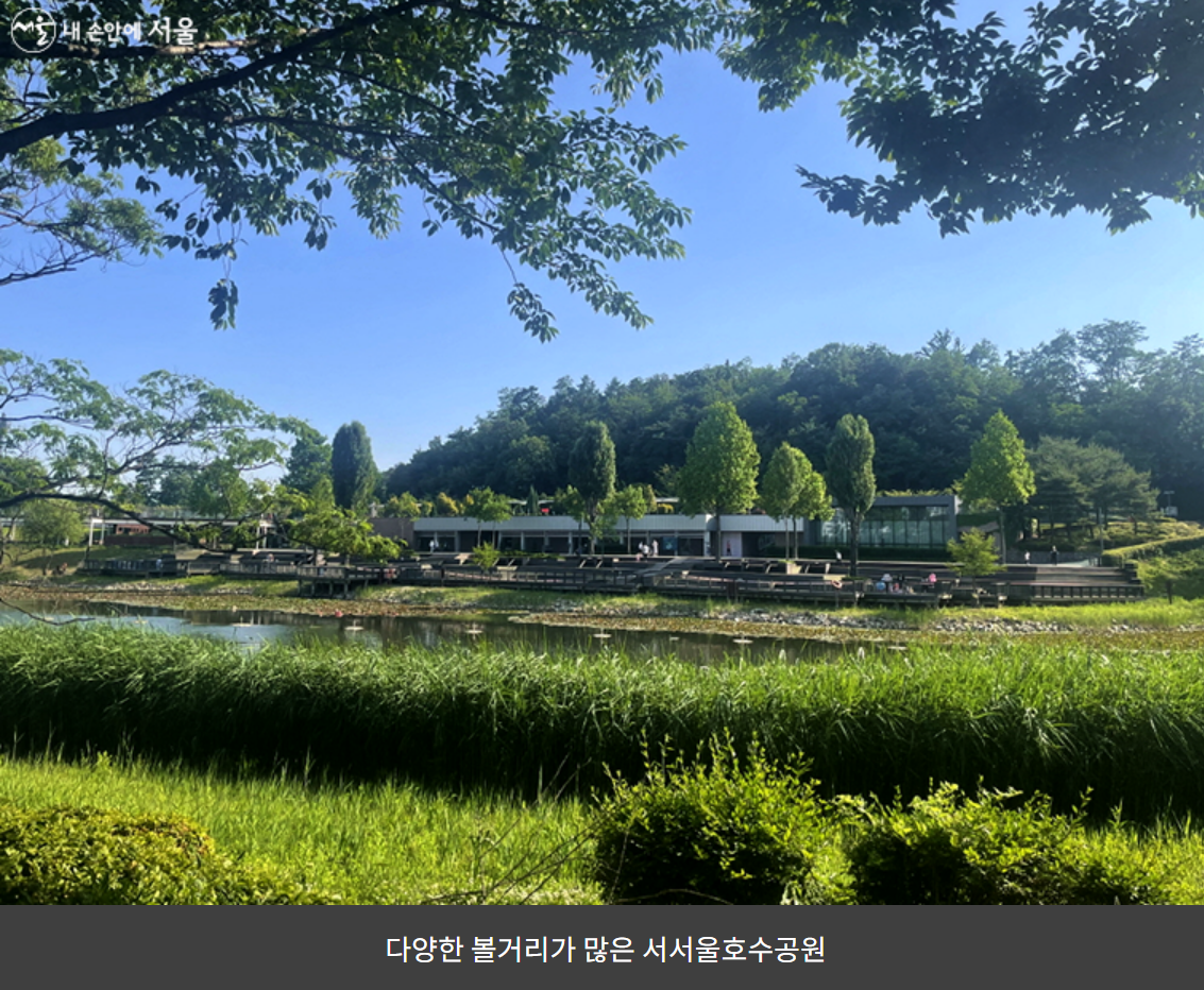 이전으로 다음으로 공원소개 탭컨텐츠 소개 “폐정수장에서 우리 곁의 친환경 공원으로” 2009년 10월에 개장한 서서울호수공원은 양천구의 옛 신월정수장에 ‘물’과 ‘재생’을 테마로 조성