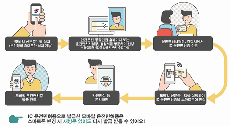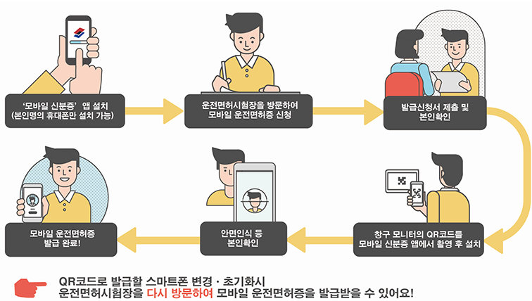 집적회로(IC) 운전면허증으로 직접 발급 받는 방식이다. 두 번째는 운전면허 시험장 창구에 설치된 QR코드를 모바일 신분증 앱으로