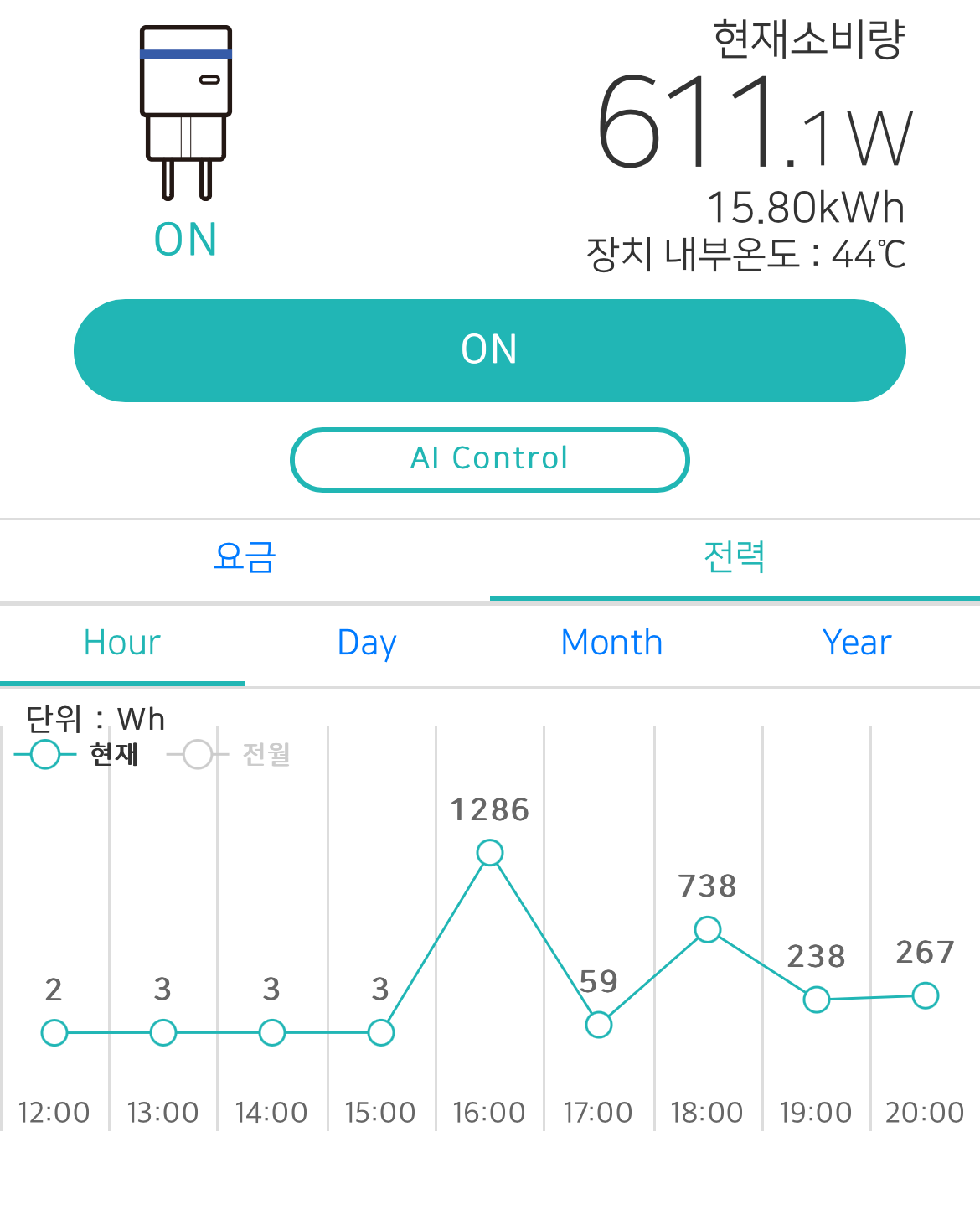 그리고 난 후에는 낮아진 온도에서는 실외기가 작동되는 시간이 줄어들다 보니, 16:00시 이후부터