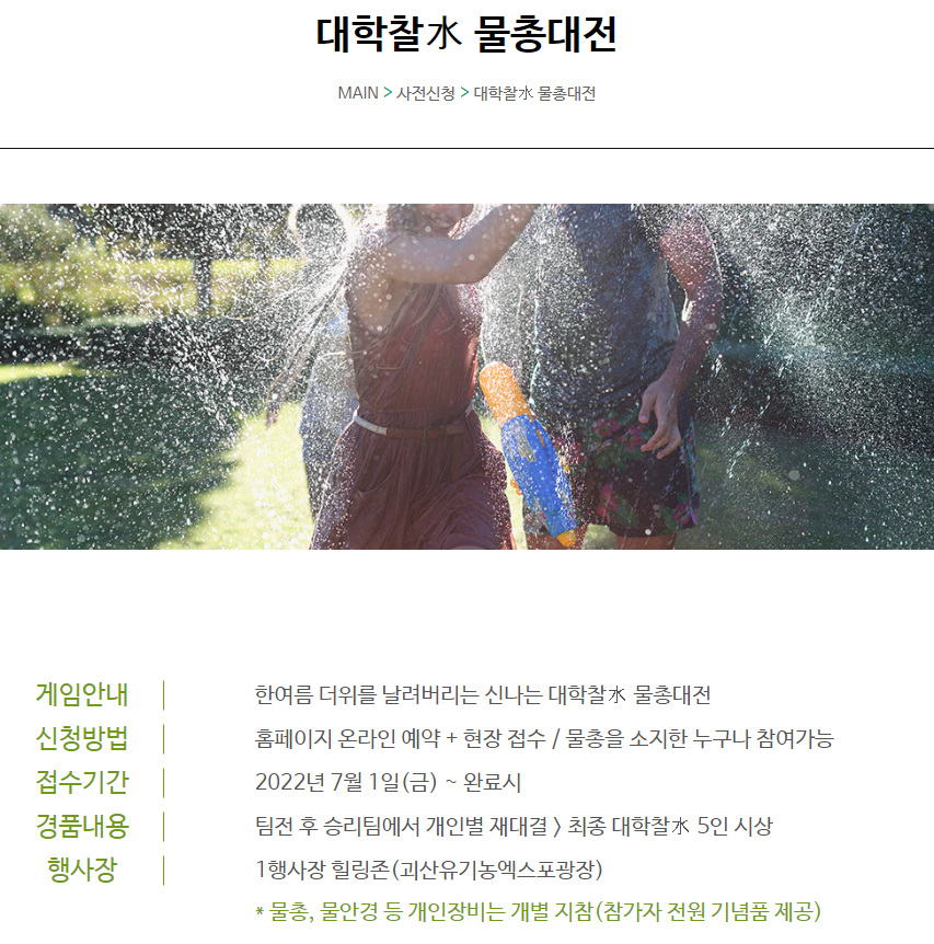 또한 다채로운 행사도 예정이 되어있는데, 첫 번째로 대학찰水 물총대전으로