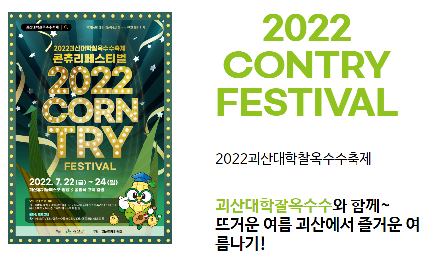 옥수수만으로도 정말 으뜸인 괴산대학찰옥수수축제를 이번에 개최를 한다고 하니, 가족들과 방문해서