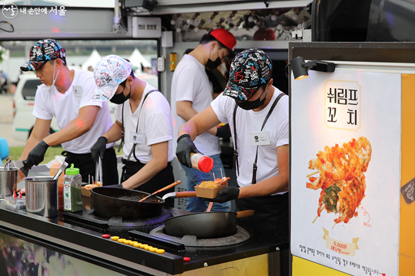 한강을 바라보며, 야외에서 음식을 먹으면 정말 꿀맛이 아닐 수가 없는데요. 스테이크, 불초밥, 츄러스 외에도 다양한 주전부리 음식들이 선보일 예정이라고 합니다. 또한 푸드트럭에서는 다회용 용기를 지참하는 소비자에게는 할인 등의 혜택을 제공할 계획이라고 합니다.