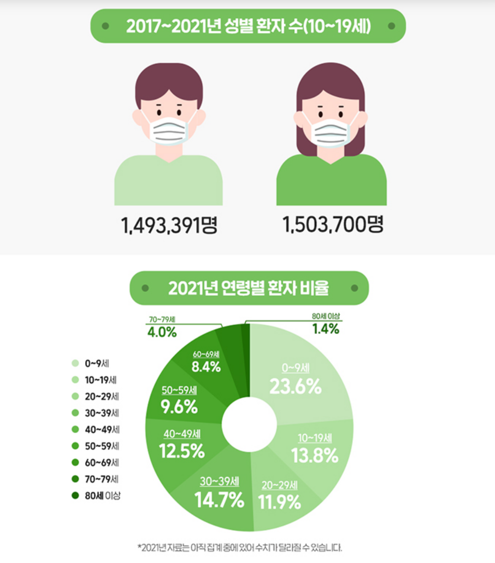 일어나는 질환입니다. 10대의 환자수는 매년 감소하고 있는 추세이긴하지만 여전히 청소년기의 아이들에게서 많이 발생되는