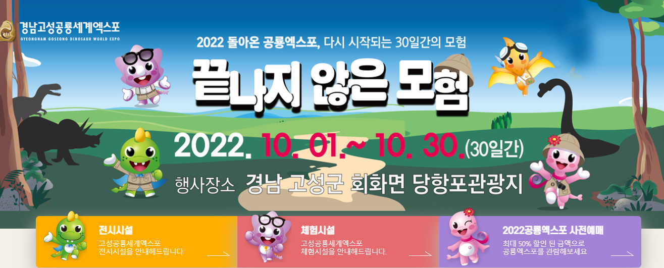 2022 경남고성 공룡 세계 엑스포 2022.10.01 ~ 10.30 바로가기