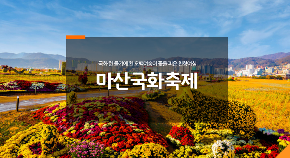 - 행사개요 : 마산 국화축제는 2000년부터 시작하여 벌써 22회째를 맞이하고 있는 축제로 개막행사부터, 국화전시, 다채로운 체험 및 공연 등을 관람하실 수 있습니다.
