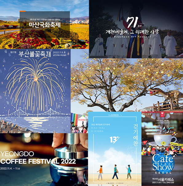 11월은 뜨거운 햇볕도 사그라들고 어찌보면 다니기에 정말 좋은 달이 아닐 수 없습니다. 겨울에 들어서면 아무래도 야외에 다니기 어려운 만큼 막바지 아쉬움을 달래고자 11월 축제 Best 7을 정리해보았습니다.