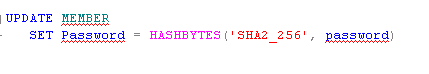 가령 MEMBER회원정보 테이블에 password 테이블 칼럼이 있다고 가정하면,