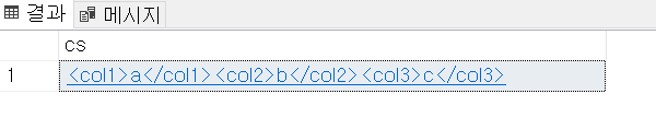 Select 명령어를 이용하여 조회를 해보면 cs칼럼에 XML형태의 데이터로 Insert 한 데이터가 저장이 되어있는 것을